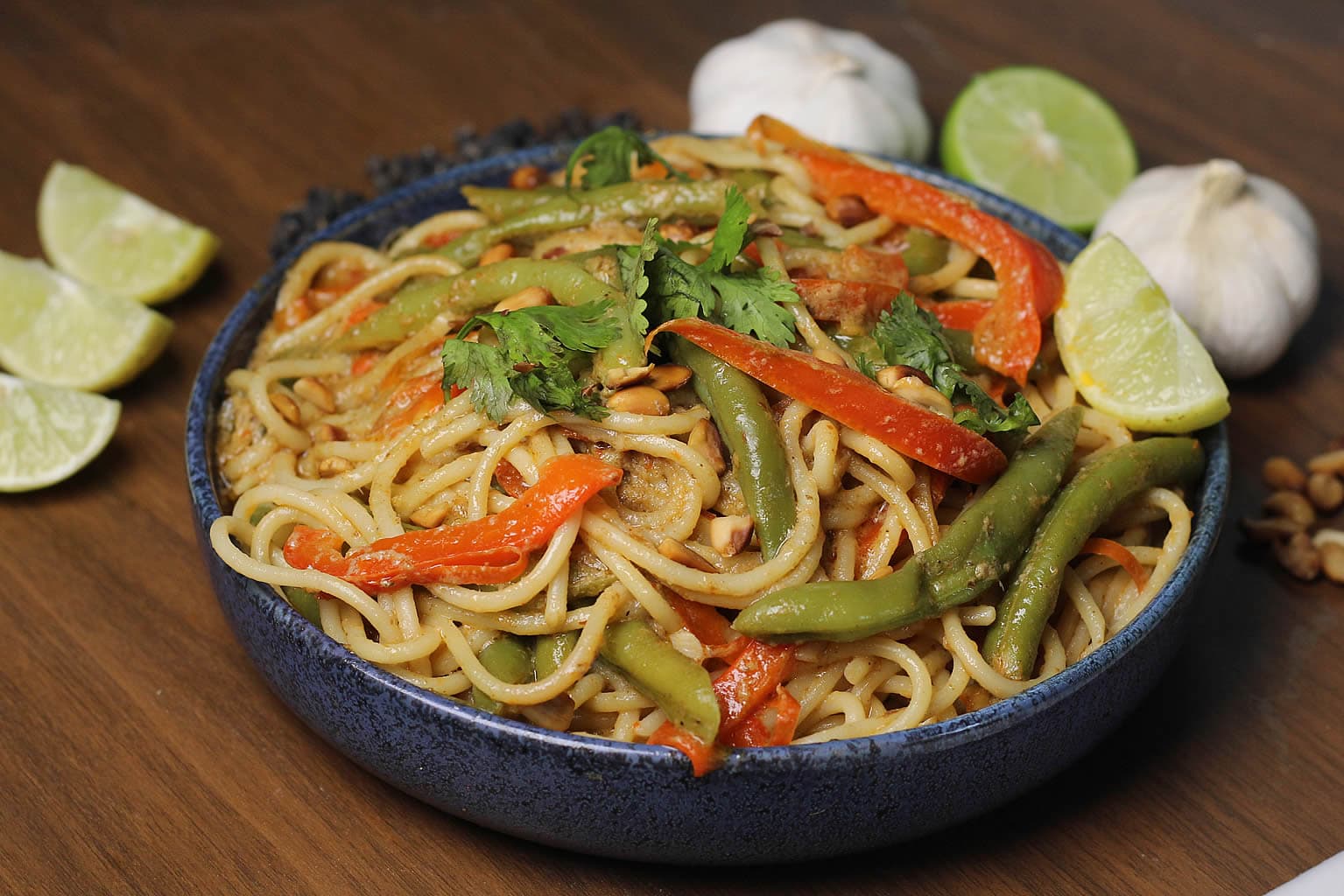 Serve hot, garnished with fresh herbs or crushed peanuts (optional).