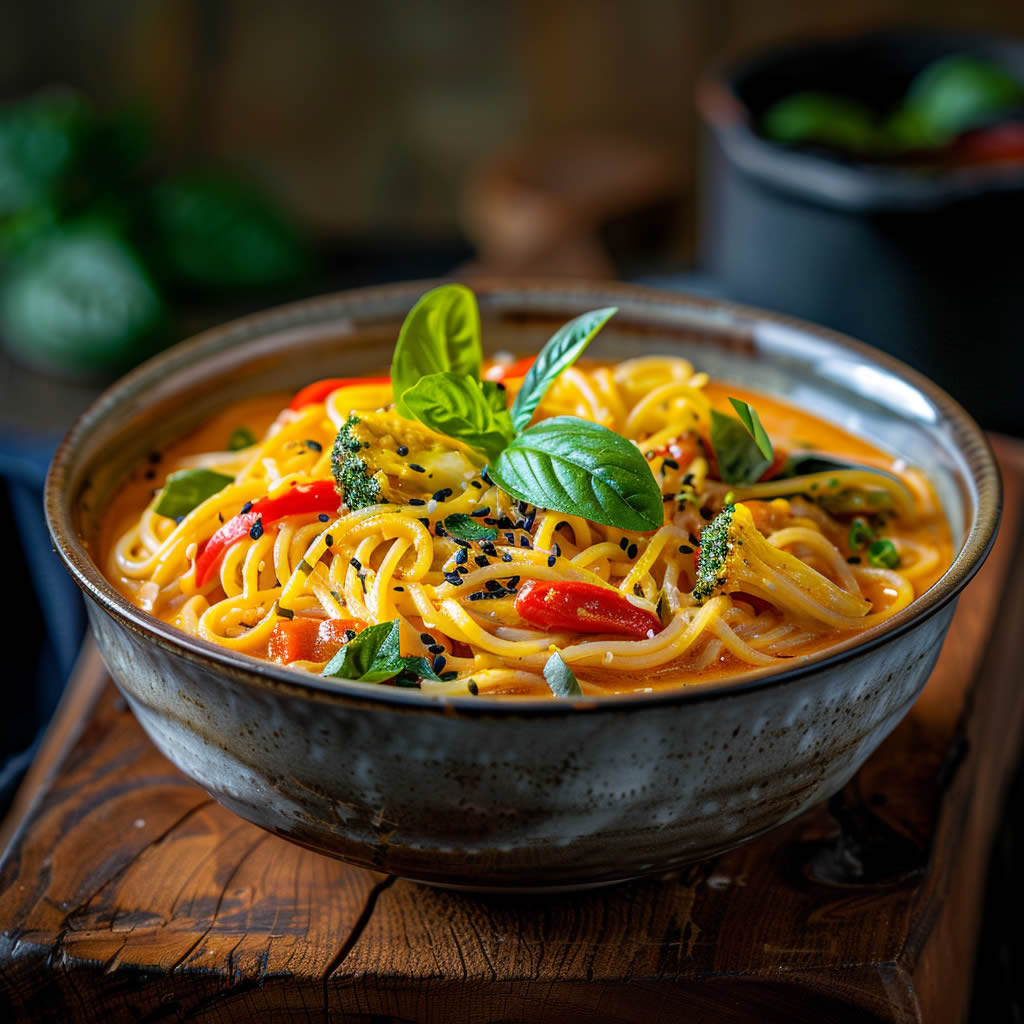 This one-pot Thai red curry pasta blends bold Southeast Asian flavors with the comfort of creamy noodles. A vibrant, spicy, and comforting dish made in just 25 minutes, with coconut milk, red curry paste, veggies, and fresh lime.